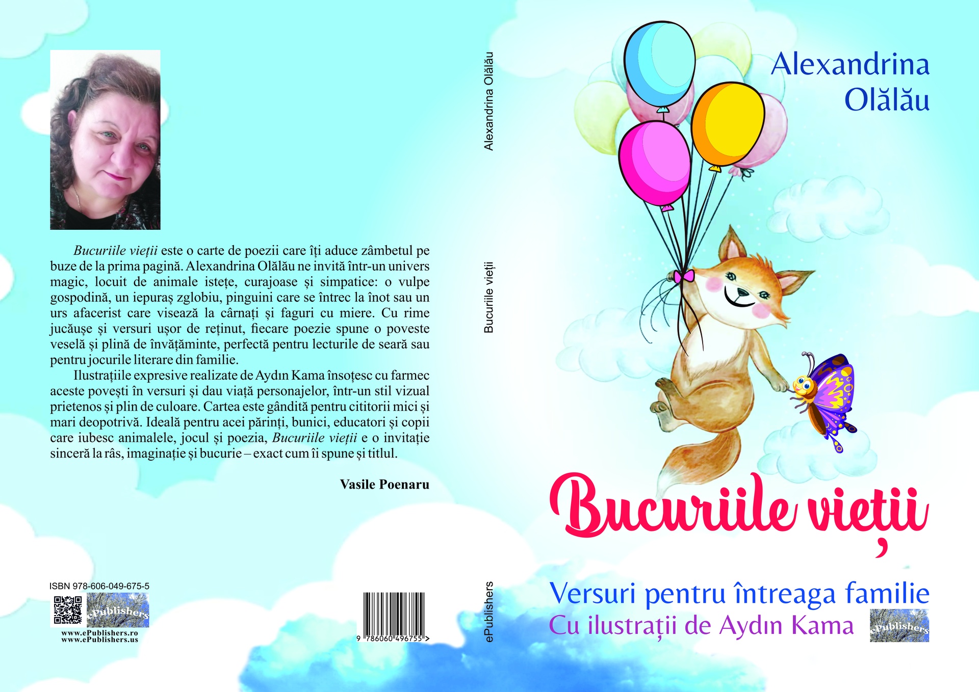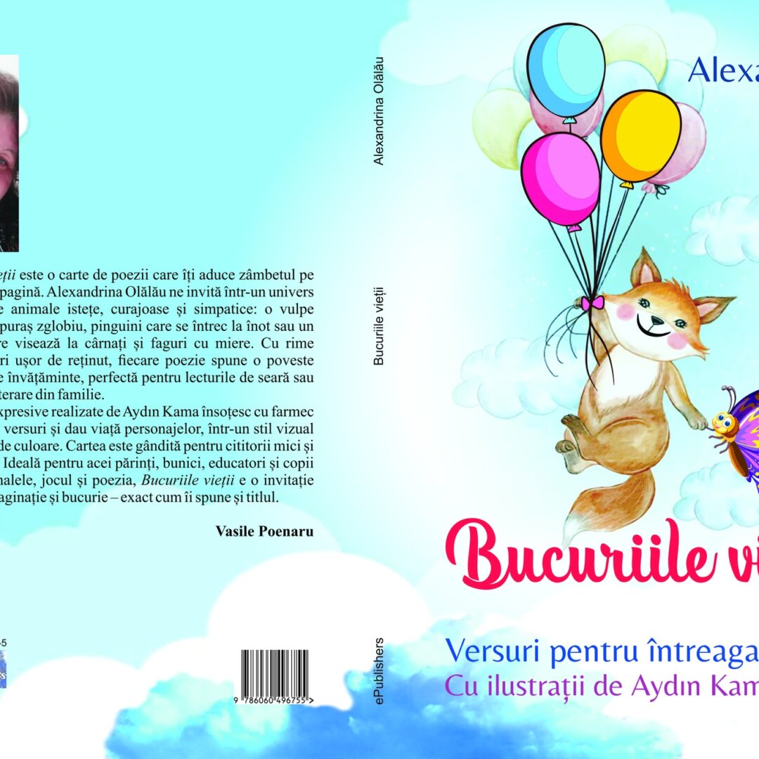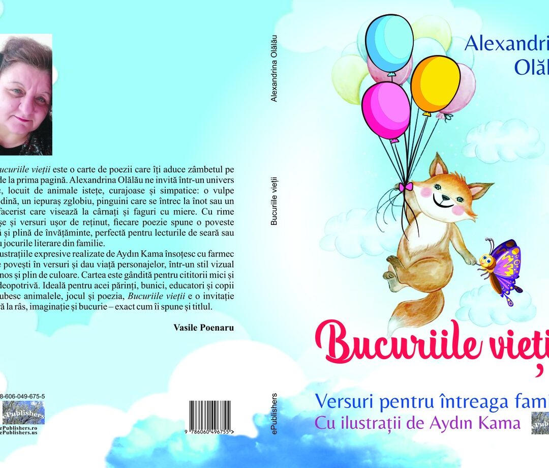 Bucuriile vieții este o carte de poezii care îți aduce zâmbetul pe buze de la prima pagină. Alexandrina Olălău ne invită într-un univers magic, locuit de animale istețe, curajoase și simpatice: o vulpe gospodină, un iepuraș zglobiu, pinguini care se întrec la înot sau un urs afacerist care visează la cârnați și faguri cu miere. Cu rime jucăușe și versuri ușor de reținut, fiecare poezie spune o poveste veselă și plină de învățăminte, perfectă pentru lecturile de seară sau pentru jocurile literare din familie.