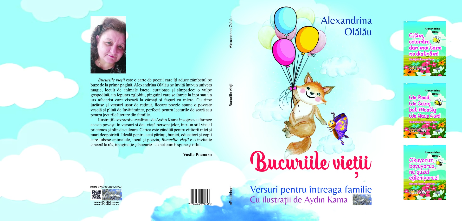 Ilustrațiile expresive realizate de Aydın Kama însoțesc cu farmec aceste povești în versuri și dau viață personajelor, într-un stil vizual prietenos și plin de culoare. Cartea este gândită pentru cititorii mici și mari deopotrivă. Ideală pentru acei părinți, bunici, educatori și copii care iubesc animalele, jocul și poezia, Bucuriile vieții e o invitație sinceră la râs, imaginație și bucurie – exact cum îi spune și titlul.